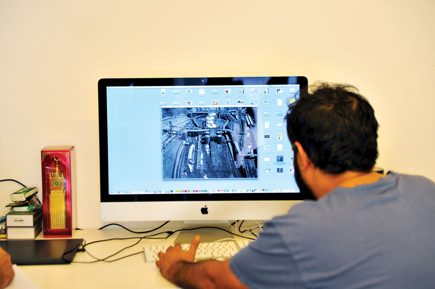 وقبل ان يأخذنا إلى ركن عمله على الكمبيوتر خرجنا من الصالة، وإذ بنا في قاعة شاسعة قيد الإنشاء وبسقف عال، فهمنا أنها سوف تكون استديو التصوير بشكل أساسي، علماً بأنها لعلوّها واتساعها تصلح لنشاطات فنية لا حصر لها.