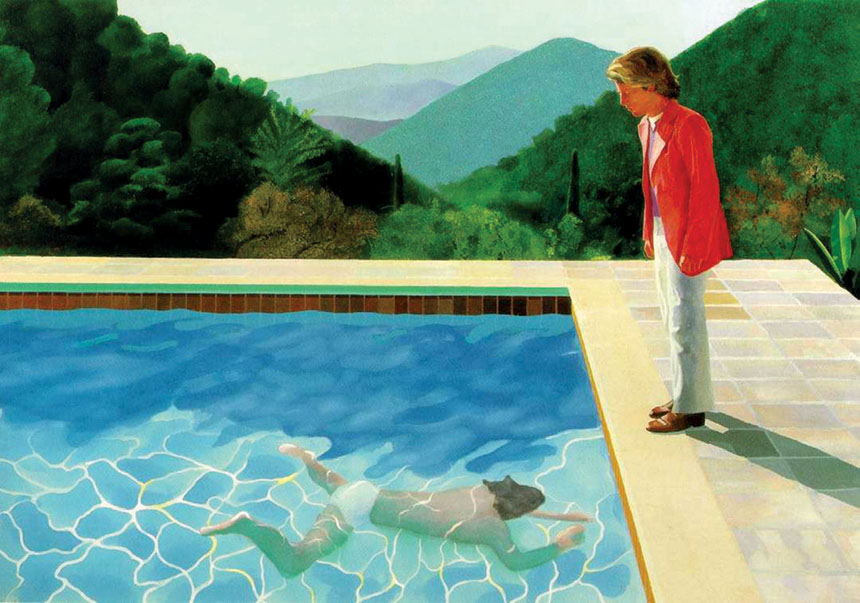 بمجرد وصوله إلى لوس أنجلس إذاً، اكتشف هوكني أن لدى الجميع حوض سباحة. وأحواض السباحة في العموم ليست شيئاً مميزاً، ولكن في لوس أنجلس كان حوض السباحة يُستخدم، بسبب الطقس، على مدار العام. كما أنه لم يكن دلالة على الرفاهية بالضرورة مثلما هو الحال في كثير من المناطق الأخرى.