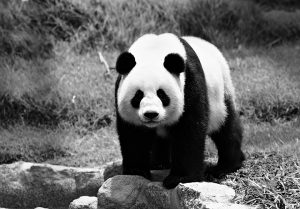 أشارت دراسة أعدَّتها جامعة كاليفورنيا إلى أن للعلامات السوداء والبيضاء في جسم دب الباندا وظيفتين، هما التمويه والتواصل. فاللون الأبيض في الوجه والعنق والبطن والردف يساعد دب الباندا على الاختباء في الثلج، أما اللون الأسود في الذراعين والساعدين فيساعدها على الاختباء في الظل.وأوضحت الدراسة أن الألوان في رأس دب الباندا لا تُستخدم للاختباء من الحيوانات المفترسة، بل لها دور في التواصل. أما الأذن الداكنة فتساعد في نقل شعور الاستنفار للتحذير من الحيوانات المفترسة.