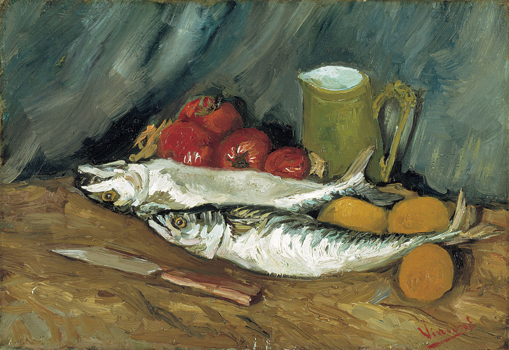 فقد رسم فان غوخ سمكتي “ماكاريل” وبقربهما السكين وثلاثة ليمونات وأربع حبّات بندورة. ورسم مونيه الإجاص والعنب بألوان زاهية للغاية. أما ربطة الهليون التي رسمها مانيه سنة 1880م، فتبقى واحدة من أشهر لوحاته، وذات خصوصية فنية تميزها عن لوحاته الأخرى التي احتوت على أسماك وأصداف وما شابه.