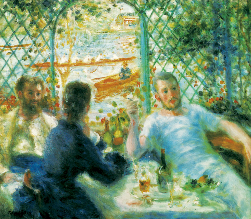 وذهب رينوار إلى ما هو أبعد من ذلك إذ وجد في المائدة مجالاً للتعبير عن الأمزجة المختلفة وصولاً إلى الاسترخاء والشعور بالنعاس الذي يتبع الانتهاء من تناول الطعام. وله حول هذا الموضوع عدة لوحات، الأولى “بعد وجبة غداء” التي رسمها سنة 1879م، وتظهر امرأة ورجلين تمدد أحدهما على الكرسي إحساساً بالتخمة، في حين أشاح الثاني بوجهه عن الطاولة. ويبدو أن نجاح هذه اللوحة دفعه إلى إعادة رسم الموضوع نفسه سنة 1881م مع عدد أكبر من الأشخاص. وفي اللوحتين تتجلى عبقريّة هذا الرسّام في تغليب جو الفرح والتفاؤل من خلال الألوان الزاهية والضوء الناري القوي، على الشعور بالإحباط الذي يمكن أن يتركه منظر فتات الخبز وفضلات الطعام والآنية المبعثرة على الطاولة المجهدة.