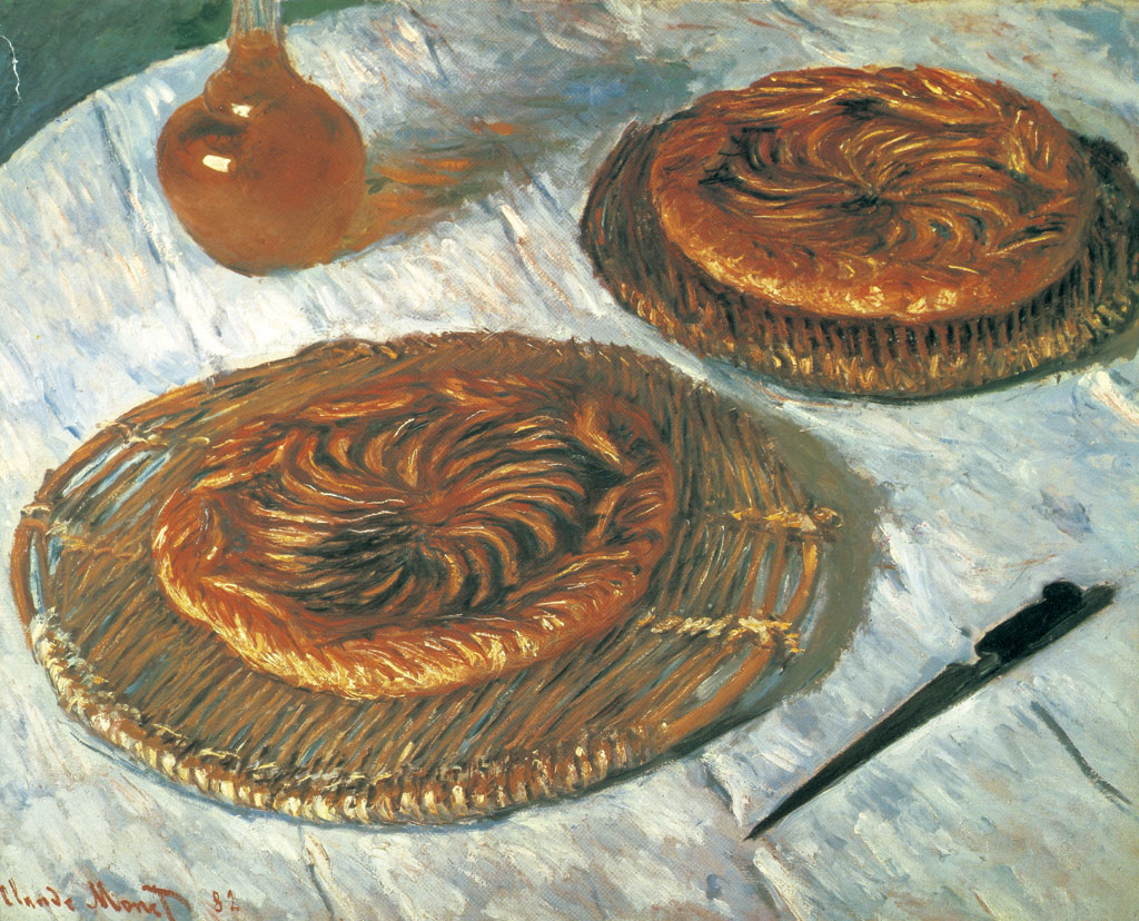 وذهب غوستاف كايبوت سنة 1880م إلى حد رسم أكثر من عشرة أنواع من الخضار والفاكهة المصففة والمعروضة على الورق الأبيض في دكان بقالة. وشملت رسوم الانطباعيين في هذا المجال كافة أنواع الأطعمة التي يمكن أن تخطر على البال من “البصل” عند بول سيزال، وصولاً إلى الفطائر المحلاة عند مونيه، والتي قالت عنها زوجته إنها تبدو في اللوحة أكثر إثارة للشهيّة مما كانت عليه في الواقع!