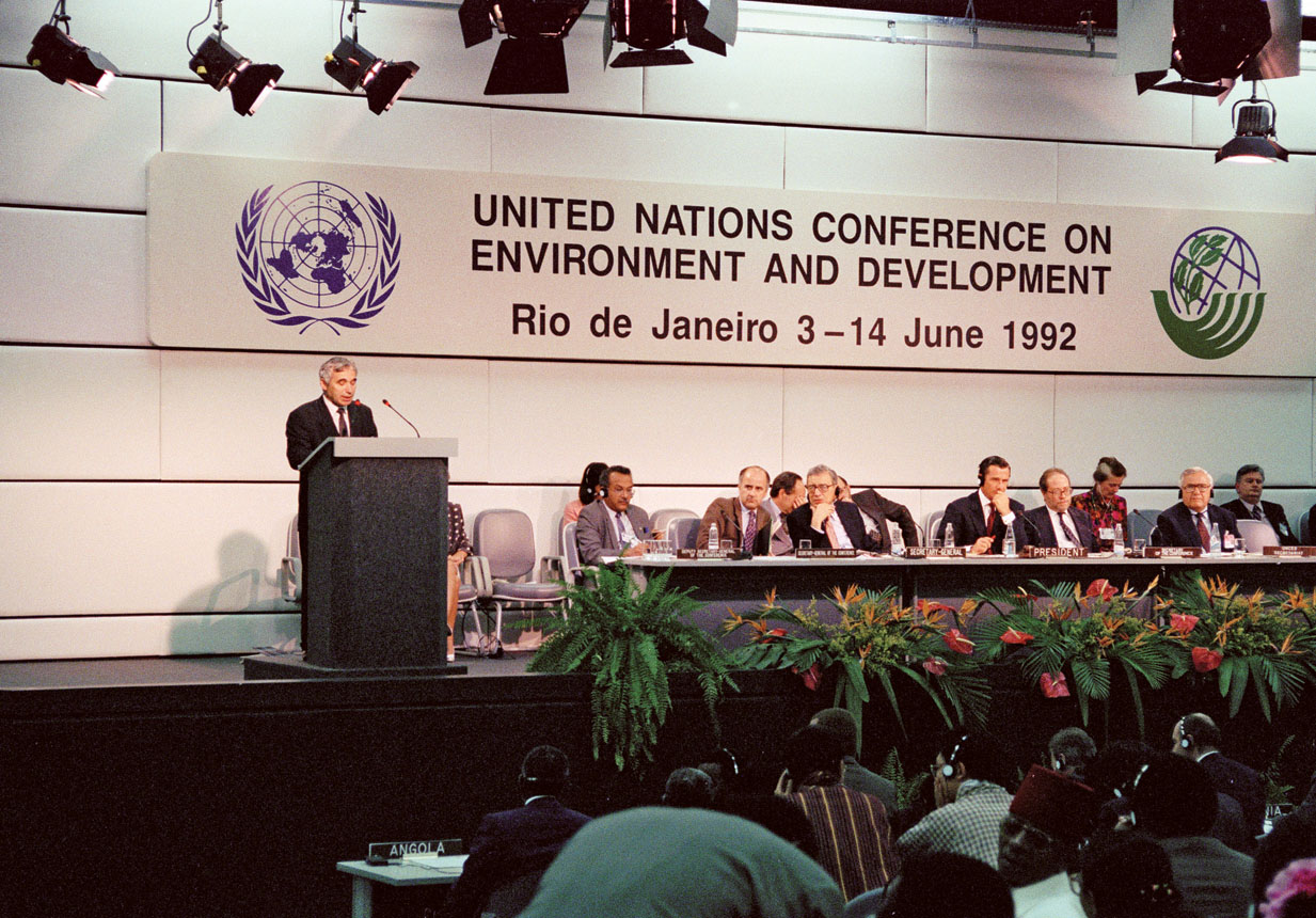 WWFLUNGSوغازات الدفيئة تنتج من النشاط الصناعي على الخصوص، وتسهم في إنتاج معظمها الدول الصناعية الكبرى، مثل الولايات المتحدة والصين، وغيرهما. وأخطر هذه الغازات، ثاني أكسيد الكربون والميثان. وهي تؤدي إلى الاحتباس الحراري، وزيادة حرارة الكرة الأرضية، على نحو خطر ينذر بعض العلماء، بل معظمهم، بأنه قد يصل إلى حالة اللارجوع، فتنطلق سيرورة احترار تجعل الحياة على سطح الكرة الأرضية متعذّرة، في غضون أجيال وربما عقود معدودة من السنين. وقد نُظّمت عدة مؤتمرات دولية، لمعالجة هذه المسألة الخطيرة، لعل أشهرها «قمة ريو»، التي عُقدت في ريو دو جانيرو، بين 3 و14 يونيو سنة 1992م. وكان من أهم مبادئها، أن التنمية الاقتصادية يجب أن تقترن بعدم إلحاق الأذى بالبيئة، وأن تلتزم المعايير البيئية. غير أن الدول الصناعية الكبرى الموقّعة على «إعلان قمة ريو»، تتملّص من الالتزام الدقيق بمبادئ الإعلان، إما لزيادة نشاطها الصناعي من أجل معالجة الأزمات الاقتصادية التي تواجهها، أو للحفاظ على نسبة نمو اقتصادها.