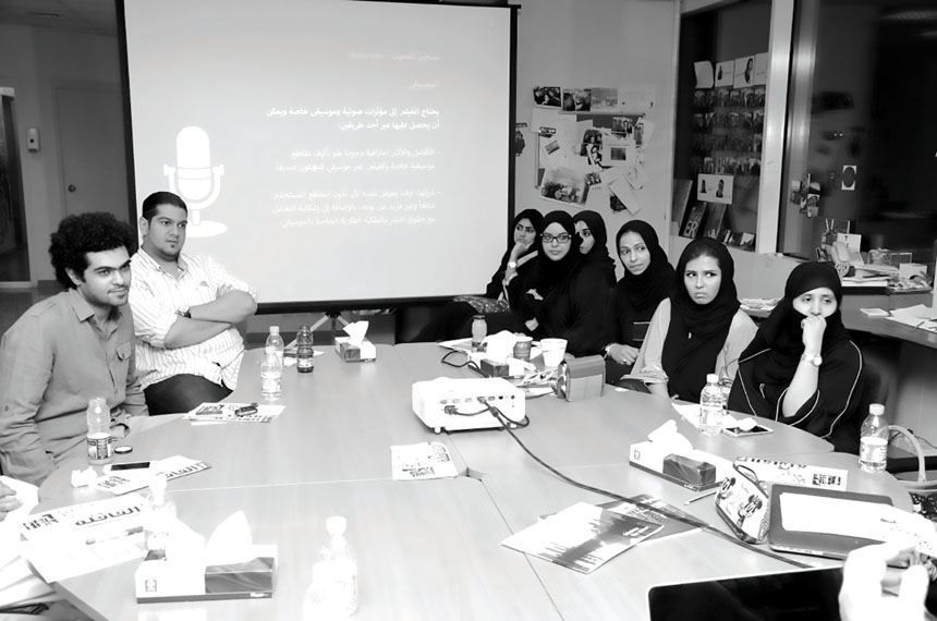وفي المرحلة الأخيرة من اليوم الثاني، أجرى المدرِّبان تمريناً عملياً للمشاركين الذين تم تقسيمهم إلى أربع فرق، كل واحدة من أربعة أشخاص، وقضى التمرين بإعداد مخطط مفصَّل لفكرة وتنفيذ فلم قصير من اختيارهم، وتحديد الخطوات اللازمة لذلك. وحظيت الفرق المشاركة بأربعين دقيقة لإعداد المخطط، ومن دون أي تدخل من المدرِّبين. وبعد ذلك عرض المشاركون مشاريعهم التي شملت أربعة أفلام تمحورت مواضيعها حول «رقصة الفرح» و«تعليم المرأة» الذي عرضته فاطمة سيديا، و«فلاش» (حول تفاعل المجتمع السعودي مع كاميرات «ساهر»)، و«من دون كلام» كقصة إبداعية ومبتكرة… وجرت مناقشة هذه المشاريع بتفاصيلها من قبل الجميع.