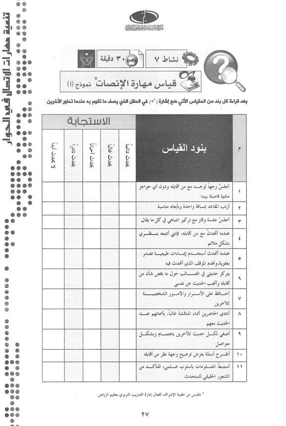 ومن بين الأمور التي استرعت انتباه المشاركين في هذه الورشة، وكشفت المدى الذي وصل إليه علم الحوار، هو توصل الباحثين إلى توزيع الإنصات إلى خمسة مستويات.