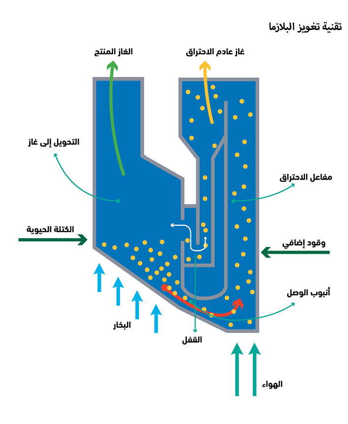 وتتمثل الطريقة الثالثة في تحويل النفايات إلى طاقة بواسطة (تغويز البلازما). والتغويز مصطلح يعني تحويل المادة من الحالة السائلة أو الصلبة إلى الحالة الغازية. أما البلازما، فهي حالة المادة الرابعة، بعد الصلب والسائل والغاز. والبلازما عبارة عن غاز مشحون إلكترونياً وشديد السخونة تولّده النجوم في الكون بطريقة طبيعية. ويمكن توليده اصطناعيـاً على الأرض عبر استخدام الطاقة الكهربائية.