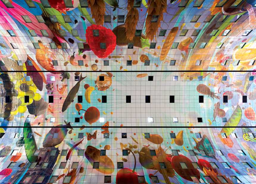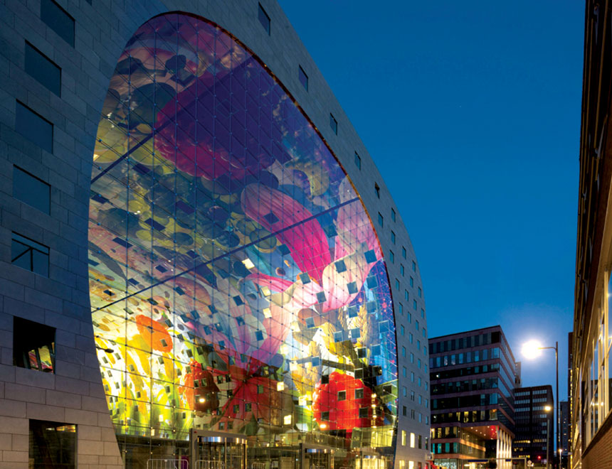 لم تكن مدينة روتردام الهولندية يوماً وجهة محبَّبة للسياح. فقد اعتاد سكانها على الحياة بعيداً عن كاميرات السياحة العالمية، وفنادقها تعتمد بالأساس على السياحة الداخلية. والمدينة التي دُمِّرت بالكامل خلال الحرب العالمية الثانية، تعج بمبانٍ هندسية حديثة، صُممت خصيصاً لتستوعب حمولة المدينة المكتظة بالبشر والأجناس، وهي تشبه في ذلك مدناً كثيرة أخرى. لكن روتردام كان ينقصها نوع من الجاذبية الجمالية التي تمنحها هوية مختلفة. وكانت توصف بأنها مدينة الإسمنت والحديد الصلب، وهي الصلابة نفسها التي على وجوه سكانها. لكن هذا كله تغيَّر بالكامل مع ظهور مبنى السوق الجديد في وسط المدينة. فبعد افتتاح هذا المبنى مباشرة، صنَّفتها صحيفة «نيويورك تايمز» الأمريكية في المرتبة العاشرة ضمن قائمة ضمّت 52 وجهة سياحية، وكذلك فعل الدليل السياحي الشهير «راف غايد»، الذي وصف المدينة بأنها «مدينة الهندسة العجيبة».