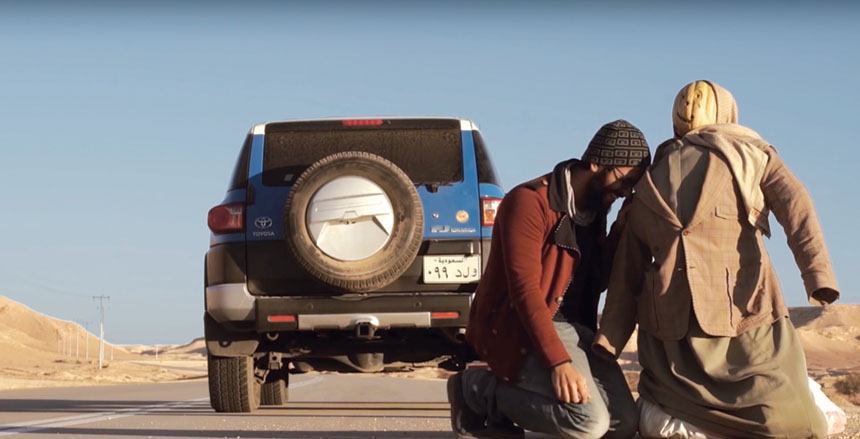 وفيما يشبه البداية الثانية أو المتكرِّرة، الممهِّدة للدخول في عمق القصة، ثمة شابٌ يعمل في وزارة الصحة، وأمامه مهمَّة عمل ينبغي القيام بها في مركز «عطوى» الصحي، فيقود سيارته على طريق صحراوي طويل من الرياض إلى قرية «عطوى»، وبينما هو في الطريق، يسلِّي نفسه بالتواصل مع أصدقائه عبر «السناب شات»، يلمح رجلاً مسناً ودميماً يقف على قارعة الطريق، فيتوقف، ويعود بالسيارة إلى الخلف، ويترجَّل منها ليعرض على المسن توصيله إلى وجهته.