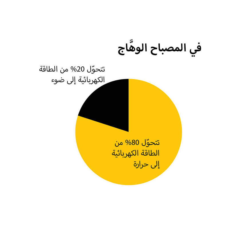 أما أكثر المصابيح انتشاراً في العالم اليوم، لإنارة البيوت والمكاتب، فهو المصباح الوهّاج، الذي يمرّر التيار الكهربائي في خيط دقيق من معدن التنجستن، يزداد حرارة فيصدر عنه ضوء متوهّج. ويُنسَب ابتكاره للأمريكي إديسون. وتتجه بعض الدول إلى منع استخدام هذا النوع من المصابيح، لأنه أقل جدوى من غيره في تحويل الكهرباء إلى ضوء. وقد سبق لأستراليا أن منعته منذ عام 2010. أما سريلانكا فقد منعت استيراده، سعياً في التوفير باستخدام الأنواع الأخرى من المصابيح الأجدى منه. وإضافة إلى ذلك، حين يُنار المصباح الوهّاج، تتحوّل %80 من الطاقة الكهربائية إلى حرارة، الأمر التي يتسبَّب بزيادة الطلب على الكهرباء في البلدان الحارّة، كما هو حال المملكة صيفاً، لاشتداد الحاجة إلى التكييف الكهربائي لمواجهة الحر في المكان المضاء، فيتضاعف الإنفاق، فيما لا يتحوّل إلى ضوء سوى %20 من الكهرباء في هذا النوع من المصابيح.