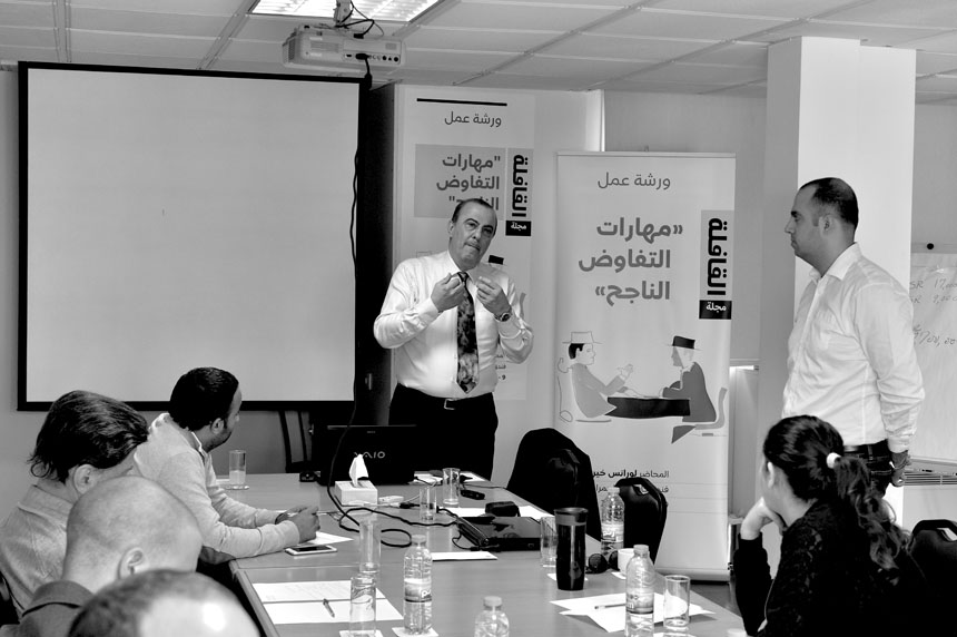أدار الورشة المهندس لورانس خير الله، رئيس شركة «دايناميك ريكروت»، بحضور عدد من الشبان والشابات العاملين في القطاع الخاص. وشهدت الورشة تفاعلاً مفيداً بين المحاضر والمشاركين من جهة وبين المشاركين أنفسهم من جهة ثانية، وتخللتها تدريبات عملية على مهارات التفاوض.