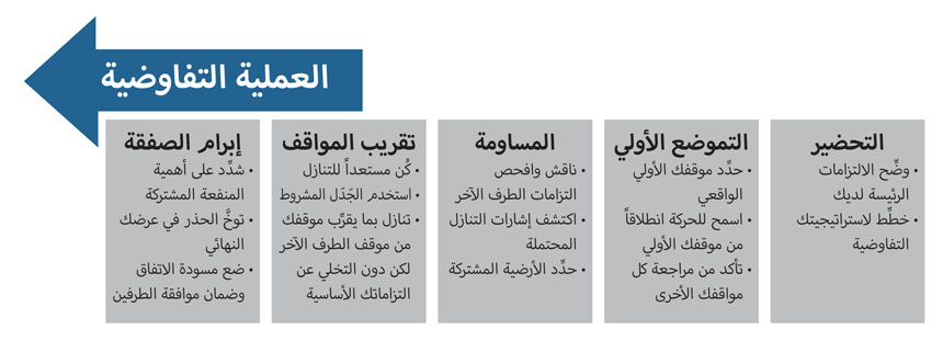 التفاوض الناجح يتطلَّب استعداداً وتحضيراً مسبقاً. علينا قبل الشروع في عملية التفاوض أن نحدد النتيجة المرجوة من العملية