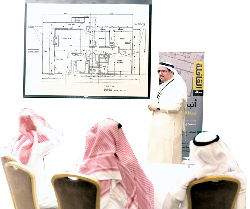 لأن بناء المسكن يشكِّل واحداً من تحديات العمر بالنسبة للفرد، ولأن الرضا عن المسكن يرتبط بسلسلة الخطوات التي تسبق الشروع في تنفيذ البناء.. عقدت القافلة، يوم 7 أغسطس في فندق الميريديان بالخبر، ورشة عمل بعنوان «أتبني بيتاً.. لحظة من فضلك. كيف تقرأ المخطط المعماري الخاص بمنزلك». أدارها المهندس المعماري الدكتور مشاري النعيم، وشاركه في إدارة جلستها الأولى المهندس حمد الشقاوي، رئيس مجلس إدارة الهيئة السعودية للمهندسين، بحضور عدد من المهندسين والمستثمرين العقاريين والمهتمين.