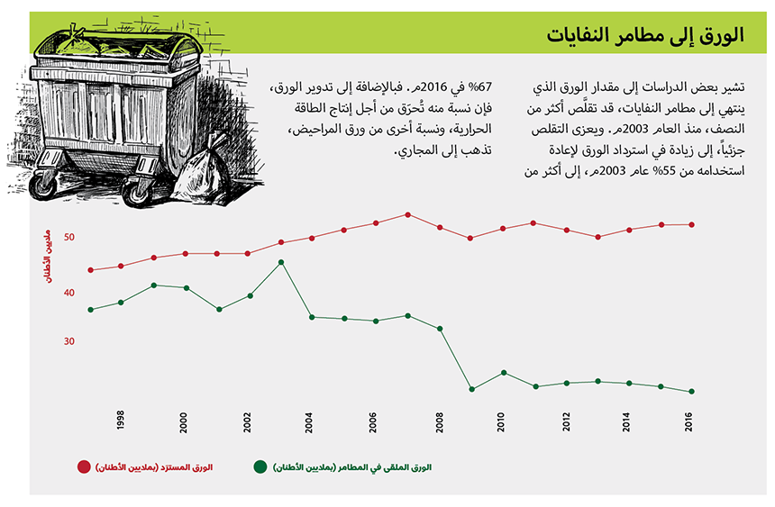 04. يشكِّل الورق مكوّناً رئيساً من النفايات في كثير من المطامر في العالم، وتبلغ نسبته %35 من القمامة.