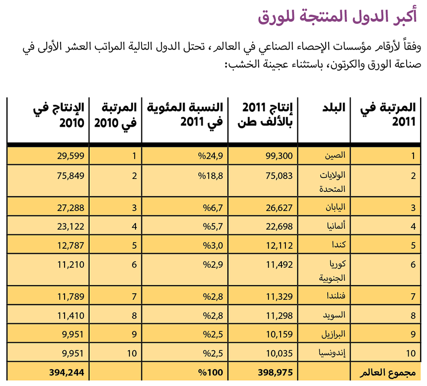 يستعرض هذا التقرير صناعة الورق واستهلاكه، لا سيما في الدول الصناعية، ليس فقط لتوافر الأرقام والإحصاءات لدى وكالاتها ومؤسساتها المختصة، بل أيضاً لأنها الدول الأكثر استخداماً للتقنية المتقدِّمة التي كان يفترض فيها أن تخفّض من استهلاك الورق.