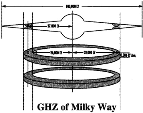 توجد حوالي %80 من نجوم الكون في مجرات خافتة السطوع، والسطوع الأقل يعني فلزية أقل وهذا يعني كواكب أقل تشبه الأرض. وفي مجرتنا تتناقص فلزية الغازات كلما ابتعدنا عن مركز المجرة، ويُعد القرص الرقيق بمجرتنا المكان الأرجح لتكوين كواكب «حياتية»؛ حيث توجد مجموعتنا الشمسية على مسافة 28 ألف سنة ضوئية عن المركز. وعلى الرغم من كل هذا فليست كل كواكب CHZ مؤهلة لنشوء الحياة عليها، وليس كل كوكب خارج CHZ يستحيل نشوء الحياة عليه. لكن لكواكب CHZ أرجحية أعلى لتوفير بيئة صالحة للحياة.