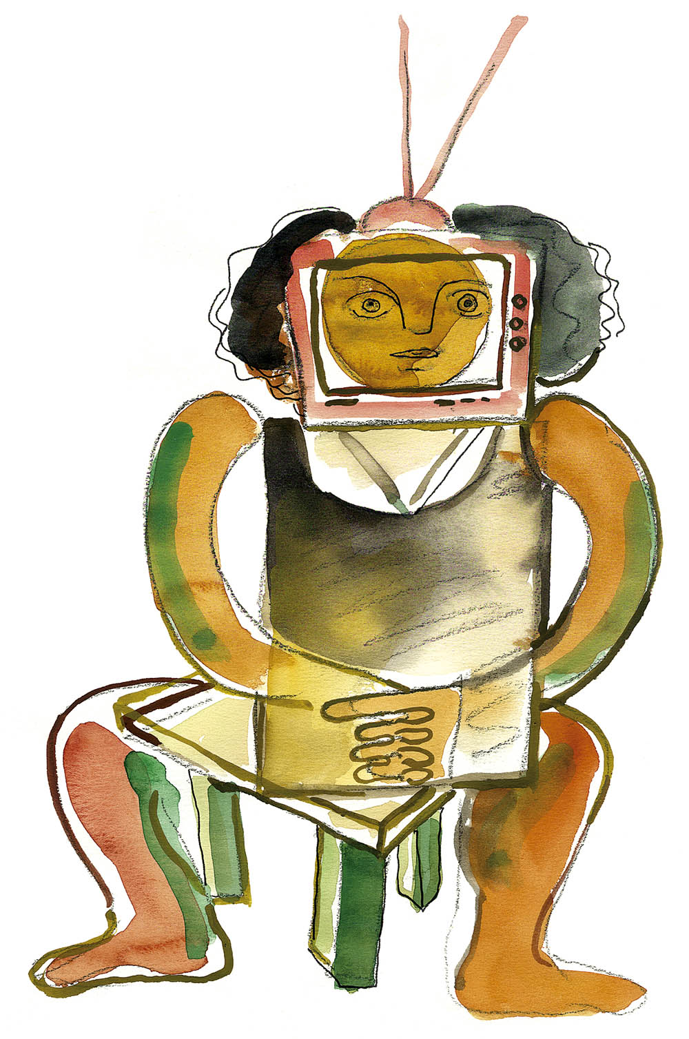 يحتل التلفزيون مساحة تفوق بكثير ما يجوز له أن يحتل من ساعات يوم واحد من حياتنا، لا بل إنه يحتل كل ساعات البعض منّا خارج العمل والنوم. إنه الجليس الذي لا يصمت في قاعة الجلوس. ويعيق تبادل الأحاديث بين الأهل والأصدقاء، أو قراءة الكتاب أو الجريدة أو سماع الراديو، زميله المضطهد، فيملأ جو الغرفة بضوضاء تحول حتى بين الإنسان وأبسط حاجاته كالتأمل والتفكير.