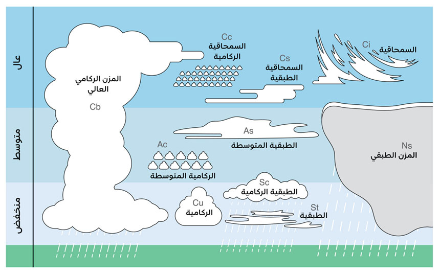 • الغيوم العالية، التي يتراوح علوّها ما بين 6000 و12000 متر.