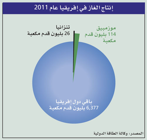 تشير توقعات وكالة الطاقة الدولية وغيرها من كبار المؤسسات العاملة في أبحاث الطاقة إلى تزايد دور الغاز الطبيعي في مزيج مصادر الطاقة المستخدمة في العالم. وقد أسهم هذا الاعتقاد في إبراز أهمية الاكتشافات الحديثة من موارد الغاز الطبيعي الضخمة التي عُثر عليها في القارة السمراء. ومع هيمنة دول شمال القارة، وهي الجزائر ومصر وليبيا بالإضافة إلى نيجيريا، على إنتاج الغاز في إفريقيا بما تمتلكه هذه الدول من احتياطات هائلة من الغاز المرافق، فإن الاهتمام على وشك التحول باتجاه الشرق، بعد العثور مؤخرًا على احتياطات كبيرة للغاز الطبيعي تحت المياه قبالة سواحل تنزانيا وموزمبيق.