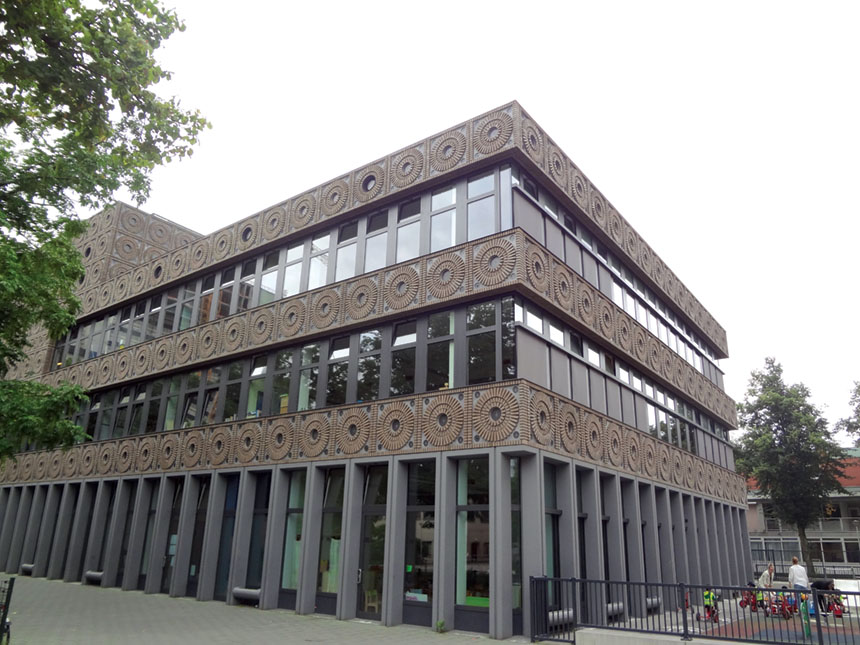 يقول مؤسس هذه المدرسة إن الحي كان يعاني من نسبة جريمة مرتفعة، فأرادت بلدية أمستردام الارتقاء بالحي، فأجرت تعديلات من بينها، إنشاء هذا المبنى والمسجد وقسم الشرطة. ونقلت تلاميذ مدرسة ابتدائية، غالبية طلابها من أبناء المهاجرين، إلى جزء من هذا المبنى الجديد، ولم تكن المدرسة تتمتع بسمعة جيدة.