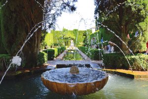 اعتبر المؤرخون الماء عنصراً مهماً بشكل خاص في الشرق لإنشاء جنائنه.وقد ذكر فرانسيسكو برييتو مورينو في كتابه الشهير “حدائق غرناطة”، أن الماء “تحوَّل في حدائق غرناطة إلى أساس للحيـاة، ولم يكن لشيء أن يتم لولا قدرة العرب على إحضار الماء من سفوح السلاسل الجبلية لري بساتينهم.