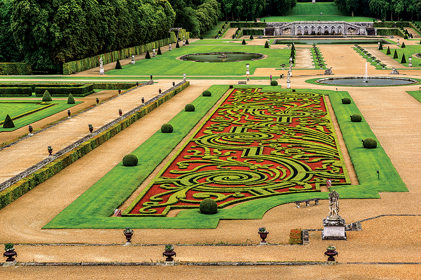 أضفى أندريه لونوتر نمطاً هندسياً مميزاً على تصميمه للحديقة، مبدعاً بخيال واسع زوايا فنية مستوحاة من حدائق بابل والحمراء في غرناطة، بعد أن اطلع على تصاميم هذه الحدائق ودرس فلسفتها بعمق. وأدرك من خلال مطالعاته أن الحديقة التي كانت صورة حية للجمال والسعادة في بلاد ما بين النهرين، كانت مبعثاً لبهجة الإنسان ورفاهيته وهذا ما عمل على أن ينقله إلى القصور الفرنسية، ونجح في ذلك بشكل ما يزال يبهر العالم حتى اليوم.