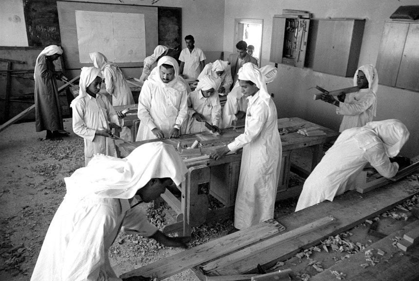 وقد قمنا بزيارة للمدرسة الصناعية، وطفنا بجميع أقسامها. وتتكون المدرسة من عدة أقسام، منها قسم للنجارة، يقوم طلابه بصنع براويز الصور والحوامل والكراسي المكتبية والمنزلية ومختلف الأثاثات المنزلية. وقسم للبرادة، يقوم طلابه بصنع جميع المواد التي يستخدمونها كالمناشير والمفاتيح والمفكات وثقالات الأوراق وغيرها. وهم يستفيدون من كل قطعة من الحديد كبيرة كانت أم صغيرة، في صنع هذه الأشياء على مختلف الأحجام والأشكال.