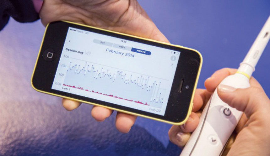 قبل الكلام عن المستقبل التكنولوجي الذي تُظهره لنا الأفلام العلمية بشكل خيالي، لا بد من الوقوف على الحاضر التطوري لتقنيات الهواتف الذكية، وهذه التطورات باتت جزءاً كبيراً منها في تناول المستخدمين مثل الاختراع الذي كشفت عنه شركة «سيتيزين ساينسيز» الفرنسية وهو نوع جديد من الأقمشة يمكنه مراقبة الحال الصحية ودرجة الإرهاق لمرتديها. وتقيس أجهزة استشعار دقيقة مغزولة في نسيج القماش ضربات القلب وحرارة الجسم ومستويات التنفس، وترسل البيانات إلى هاتف محمول ذكي. وينضم هذا القماش إلى قطاع واسع من الأجهزة التي كشف النقاب عنها في المؤتمر العالمي للهواتف المحمولة والتي تقيس كل شيء من أنماط النوم إلى السعرات الحرارية والمسافات التي يقطعها المستخدم سيراً على الأقدام. وعرضت شركة «بروكتر آند جامبل» فرشاة أسنان موصولة بالهاتف المحمول توجه النصح للمستخدم ليعرف متى ينتقل من مكان في الفم لآخر لتحسين طريقة تنظيف أسنانه.