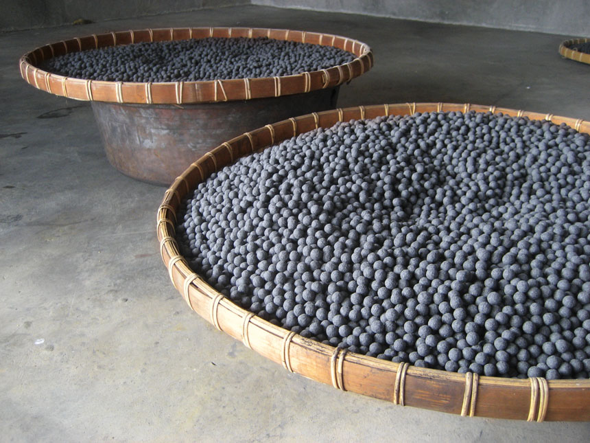 نعود إلى مصانع المنتجات الكيميائية التي تخلط داخل طبلة مع حبات الأرز أو القطن. يجب أن يكون حجم الكريات واحداً بقدر الإمكان لكي تشتعل وتنثر في الوقت نفسه. يمكن الحصول على تنويعات من الألوان من خلال وضع منتجات فوق بعضها بعضاً، ويجب الآن تغليف كرة القنبلة بالورق على نحو منتظم جداً، حتى لا يؤدي الانفجار إلى انشطارها إلى نصفين بل إلى انفجارها دفعة واحدة في كل الاتجاهات. ويجب تغليف القنابل، تبعاً لنوعها، بما يصل أحياناً إلى ثلاثين طبقة من الورق. لا مجال للتجريب في الليلة المحددة للعرض: فكل شيء سيجري مرَّة واحدة فقط، ويجب أن تكون نتيجة الابتكارات الجديدة إبهار المشاهدين.