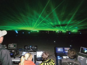 • كاترليه: هنالك ثلاث مسائل رئيسة، أولها ما يطلبه الزبون. يجب أن ندخل مخيلته وأن نجد الأسلوب الذي يعجبه في إيصال الرسالة التي يتوخاها. وتتعلق المسألة الثانية بالوسائط المستخدمة. هنالك فرق كبير بين عروض الألعاب النارية المحضة وعروض الوسائط المتعددة التي قد تتضمن شعارات وصوراً نارية، كما أن الليزر يفتح آفاقاً رائعة حيث أستطيع استخدام وتحريك الغرافيكس وعرض الأحرف والمحتوى الذي يحكي القصة كاملة، ويمكن عرض هذه الصور على مستوى سطح الماء، ثم تكون الخاتمة بعرض أشرطة فيديو. أما المسألة الثالثة فهي المكان. من المهم جداً هنا أيضاً أن ندرس المعطيات قبل البدء بالعمل. لننظر مثلاً إلى هذه الصورة لخرائب قصر قديم: لأننا لا نعرف طبيعة المكان أو كيفية التعامل معه، فإنه يجب علينا أن نفكر بكيفية تقسيم المساحة المتاحة، وبالتالي تحديد علامات هادية. أما على قطعة الأرض الكبيرة هذه، فإنه يجب أن نحسب المسافات المتعلقة بالسلامة فيما يخص المشاهدين، ومحطات الخدمات، والأسطح المصنوعة من مواد قابلة للاشتعال، وهلمَّ جراً. علينا القيام بعملية استكشاف في غاية الدقة. هنالك أمر آخر عندما نكون بقرب مطار أو فوق ارتفاعات معيَّنة، إذ يجب الاتصال بمكتب السلامة الجوية وطلب تصريحات خاصة، وهنالك كثير من العمل الإداري المطلوب من أجل التقيد بشروط السلامة.