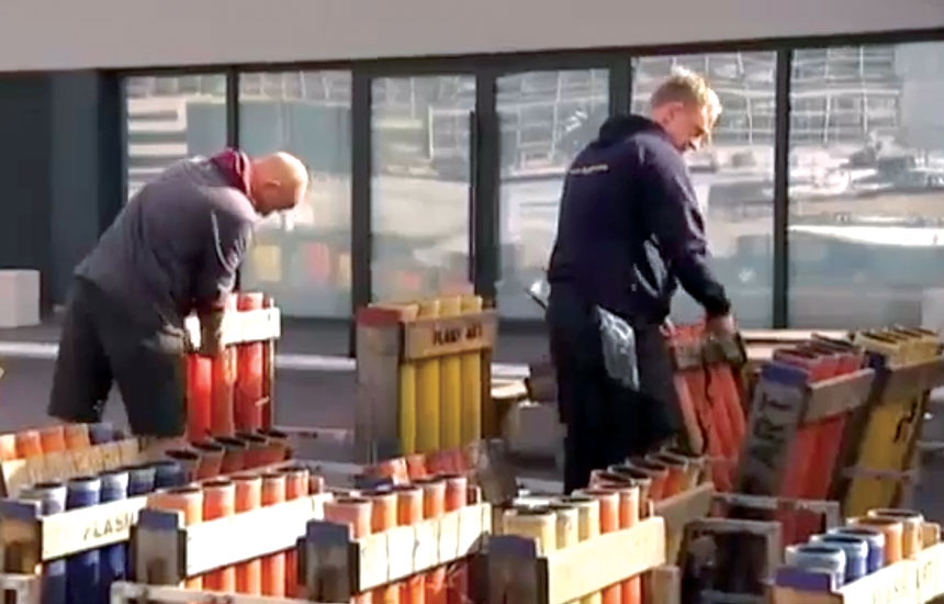 بالعودة إلى مركز الاختبارات، حيث شاهدنا الخبراء يتفحصون مجموعة من الصواريخ لمعرفة مدى سلامتها واستقرارها. فهناك قسم منها يُترك لعدة أيام في مكان مسخّن حتى 50 درجة مئوية (وهي درجة الحرارة التي تخزن فيها عادة) لمعرفة ما إذا كانت ستظل تعمل بعد التعرض لهذه الحرارة المرتفعة. وتختبر صواريخ أخرى بتعريضها لاهتزازات قوية خلف جدران من الأسمنت، والمقصود هنا محاكاة الأحوال التي تنقل فيها بالطائرة داخل حاويات، حيث تتعرَّض لاهتزازات شديدة. وفي اختبار آخر، يُفتح صاروخ للتحقق من مكوِّناته والتأكد من أنها مرخصة في أوروبا، والتحقق من مراعاة معايير التشكيل والتركيب. وهنالك مشكلات أخرى: فانفجار المفرقعات والصواريخ يُطلق غباراً يحتوي على بقايا البارود الأسود والمواد الكيميائية. وقد تؤدي احتفالات 14 يوليو (ذكرى اقتحام سجن الباستيل – الثورة الفرنسية) مثلاً إلى ذر أكثر من 1000 مليغرام من هذه الجزيئات في متر الهواء المربع، أي حوالي 30 ضعف النسبة المسموح بها بموجب اللوائح الأوروبية، مما قد يؤدي إلى تهيج في العيون وصعوبات في التنفس.