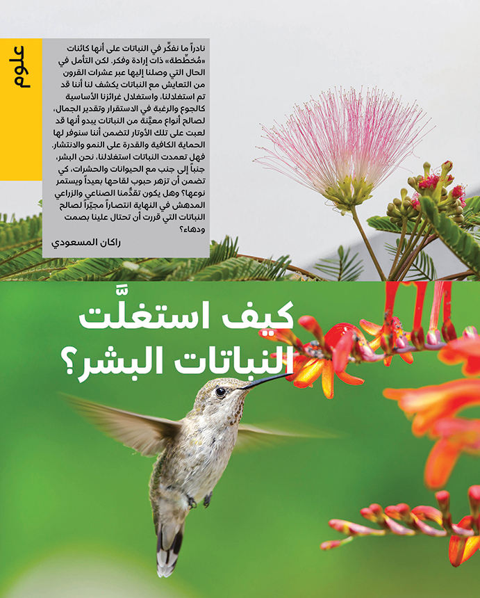 كما تلقينا رسالة من زينب سليمان السليمان من جدة أيضاً، تبدي فيها إعجابها بموضوع “كيف استغلَّت النباتات البشر؟” الذي كتبه راكان المسعودي في عدد القافلة لشهري سبتمبر- أكتوبر من العام الماضي، ووصفته بأنه “من أهم ما قرأت في مجال العلوم خلال الأشهر الماضية”.