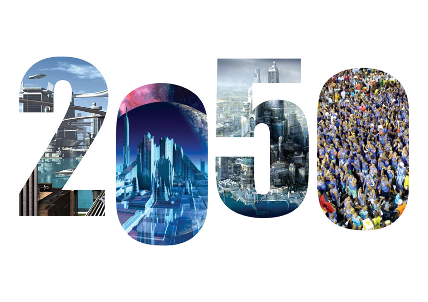 1390584098_kakim-stanet-tehnologicheskij-mir-k-2050-goduفي عام 2050م سيصل إجمالي عدد سكان الكرة الأرضية إلى حوالي 9,5 مليار نسمة، منهم 6 مليارات نسمة يسكنون في المدن وحدها. فهل استعدت المدن لهذا الزحف؟ ومن أين للكرة الأرضية بالطعام الذي يحتاجه هؤلاء؟ وكيف يمكن تغطية احتياجاتهم من الطاقة؟ وإلى أين ستذهب المخلفات والقمامة التي سيتسبب فيها كل هؤلاء؟ الحل هو تطوير آليات إعادة التدوير، للاستفادة من هذه المخلفات، بدلاً من إنتاج مواد جديدة.