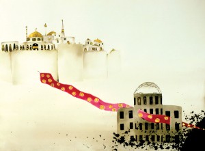 قاومت جمانة بإيمان قوي لا يتزعزع ذلك الوحش الشرس الذي يتربص بوجودها وبممتلكاتها الروحية والخاصة. زارت اليابان عام 1979م وشاهدت أثر الدمار الذي حل بهروشيما نتيجة قصفها بقنبلة نووية. رسمت حية شيطانية تخترق هيروشيما متجهة إلى المسجد الأقصى، رابطة بذلك بين التدمير الوحشي الذي أحدثته القنبلة الذرية، واعتداءات الصهاينة المتطرفين على المسجد الأقصى لاستكمال جريمة مسح كل أثر للذاكرة الفردية والجماعية لشعب فلسطين بأكمله. على الرغم من كل ذلك لم تكن جمانة صاحبة شعارات طنانة، ولم تكن ترسم لتنشر رسالة تبشيرية تدعو إلى الاقتداء بها. رسمت جمانة من موقع الجرح مباشرة، رسمت من مكمن الروح، لذلك جاءت رسومها كصك بوح داخلي ارتبط كحبل سري بهويتها وببلادها وبعاصمة بلادها الجميلة، زهرة المدائن، القدس.
