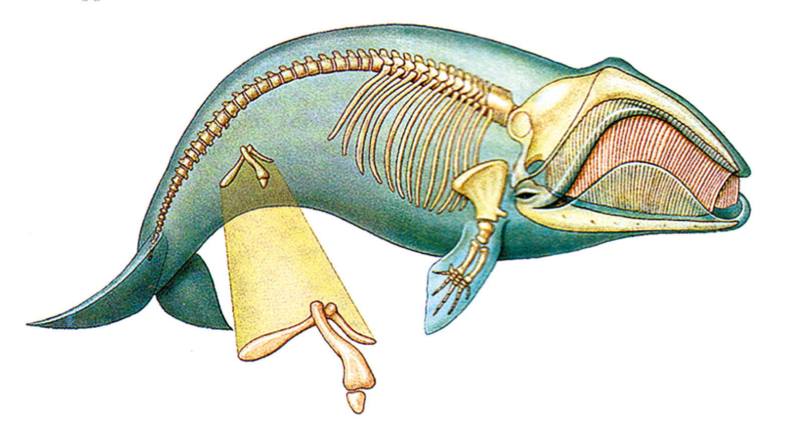 كما هو معروف، فإن الحيتان والدلافين لا تحمل أية أطراف نتوءات على أسطح أجسامها السفلية، ولكنها جميعها وبدون استثناء تمتلك عظمة الفخذ والحوض مدفونة بعمق تحت الجلد. كما لوحظ أن هذه الأنواع من الثدييات البحرية لا تظهر عليها النتوءات إلا في مراحل مبكرة من التخلق الجنيني وسرعان ما تنكمش فلا يبقى مكانها إلا سطح أملس ليتزامن ذلك مع تكون الزعانف الخلفية، ما عدا بعض الحالات التي سجلت وجود نتوء واضح عند بعض أفراد هذه الأنواع.