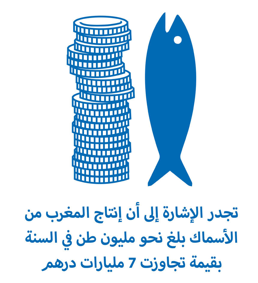 تجدر الإشارة إلى أن إنتاج المغرب من الأسماك بلغ نحو مليون طن في السنة بقيمة تجاوزت 7 مليارات درهم، ويسهم الصيد الساحلي بنسبة %82 من الإنتاج المحلي.