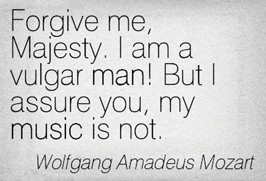 • «سامحني يا صاحب الجلالة، فأنا رجل أهوج، أما موسيقاي فليست مثلي». (توم هلس في فِلم «أماديوس موزار»، اخراج ميلوس فورمان، سيناريو بيتر شايفر – 1984م).