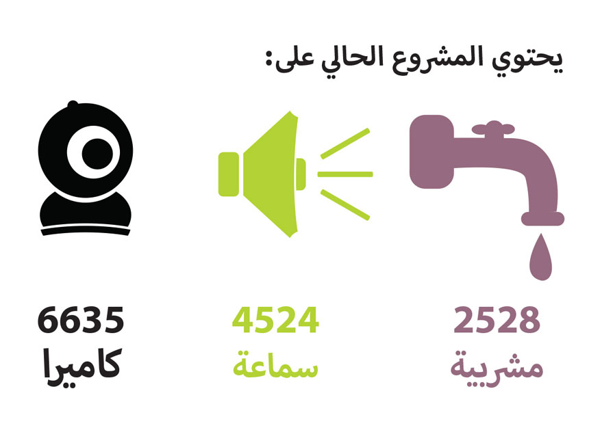 حوى المشروع أنظمة متطورة، كنظام الصوت، حيث بلغ إجمالي عدد سماعات الحرم قرابة 4524 سماعة..