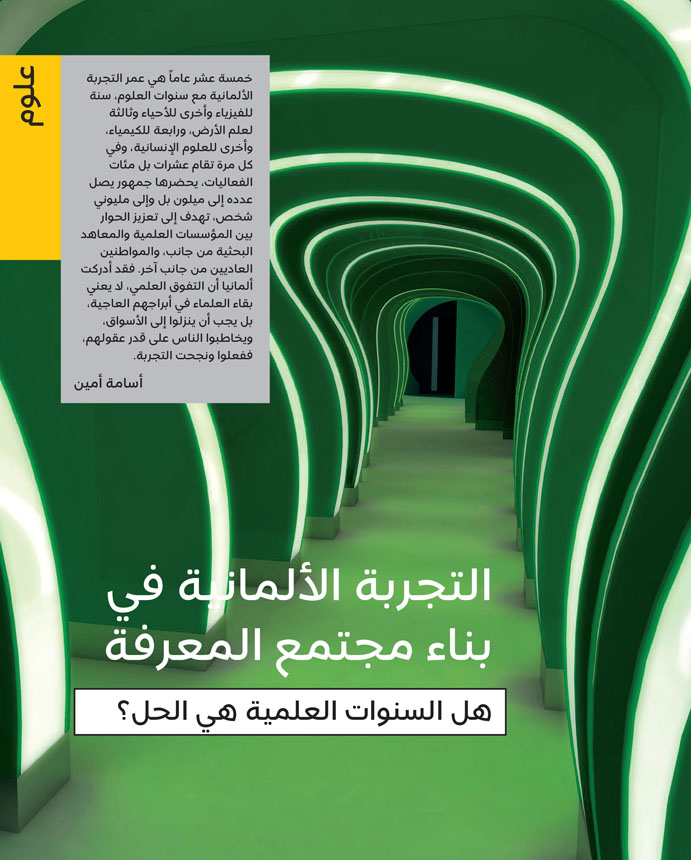 وعقَّب محمد مختار على موضوع «التجربة الألمانية في بناء مجتمع المعرفة»، قائلاً: «إننا في أمس الحاجة لتبني مثل هذه الفكرة. لأن العالم العربي يعاني هوة ما بين تخصصات علمية وأخرى، وهوة ثانية ما بين النخبة المثقفة والمتعلمة وعامة المجتمع من جهة أخرى. وتنفيذ ما يشبه هذه المبادرة الألمانية يساعد في ردم الهوتين. وأتمنى أن نرى ذلك يحصل في بلادنا».
