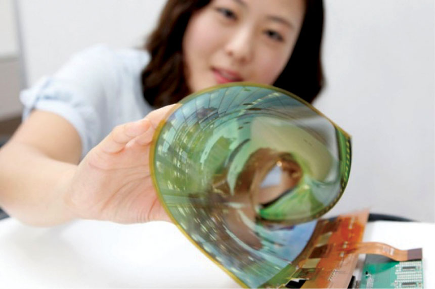 في حفل أقيم في مدينة «سول» عاصمة كوريا الجنوبية، عرضت شركة «إل جي ديسبلاي» الكورية، حديثاً، آخر منتجاتها من الشاشات المرنة.