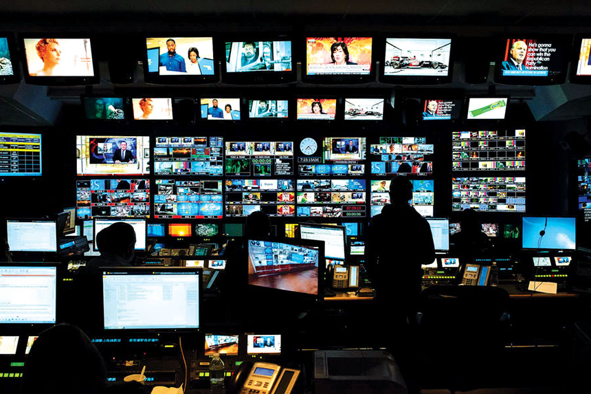 هي الغرفة الرئيسة في مبنى التلفزيون حيث يجلس المخرج ومساعدوه. وهي عادة تطل على الاستديو لتمكين المخرج من رؤية ما يدور فيه. وتنتصب أمامه شاشات المراقبة التي تتشكل من الشاشة الرئيسة التي تظهر عليها الصورة التي تبثها الكاميرا الرئيسة الموجودة داخل الاستديو، وإلى جانبها شاشة تحضيرية، وهي الشاشة المرتبطة باللقطة التي سيختارها المخرج تالياً، وتبثها كاميرا أخرى موجودة في الاستديو أيضاً. كما توجد أمام المخرج شاشة مراقبة لكل كاميرا داخل الاستوديو. وأمامه جهاز اتصال بكامل فريقه أينما كان بالإضافة إلى تجهيزات هاتفية تمكنه من التحدث مع فريق العمل في مبنى التلفزيون، والتنسيق مع استوديوهات مرتبطة مع برنامجه في دول أخرى عبر الاقمار الفضائية.