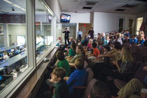 داخل غرفة المحطّة ترتفع شاشتا عرض كبيرتان في المقدّمة، كما ترتفع عدّة كاميرات موصولة بشاشات تلفزيون يتم التحكّم بها عن بُعد لتوفير البثّ المباشر لكافّة النشاطات وعرض كلّ الإحداثيات والتطوّرات المختلفة.
