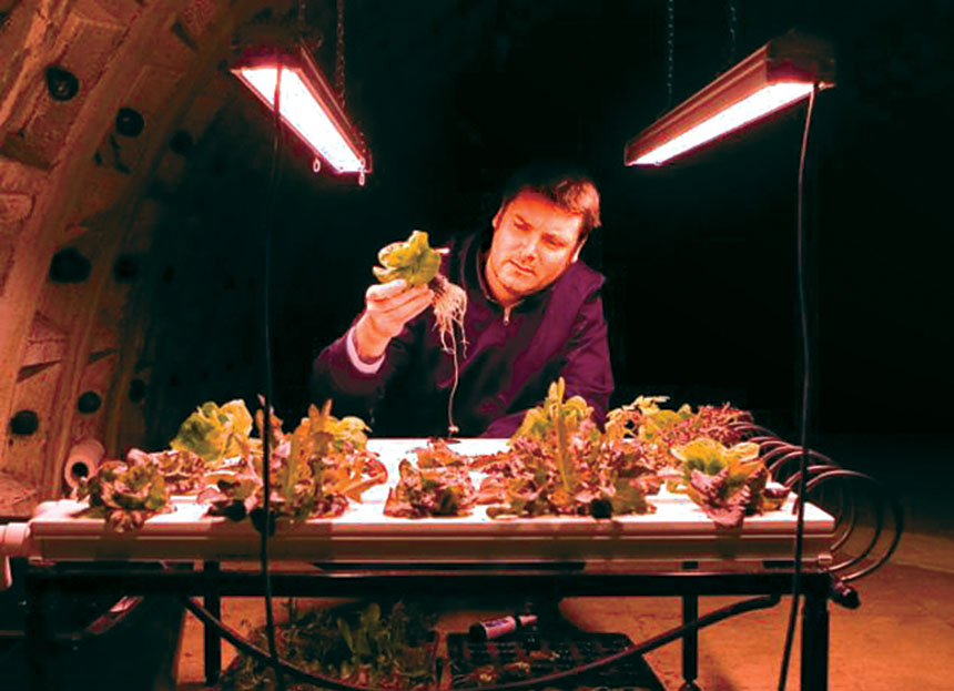 قد يكون آخر مكانٍ يمكن التفكير فية لإنشاء مزرعة خضار وفاكهة، ملجأ يقع على عمق 100 قدم تحت سطح الأرض. أُنشىء هذا الملجأ في مدينة لندن أيام الحرب العالمية الثانية، وكان قادراً على استيعاب أكثر من 12000 شخص كانوا يتجمعون فيه للحماية من الغارات على المدينة في عام 1944م. وبعد هجره لمدة 70 عاماً، قرر