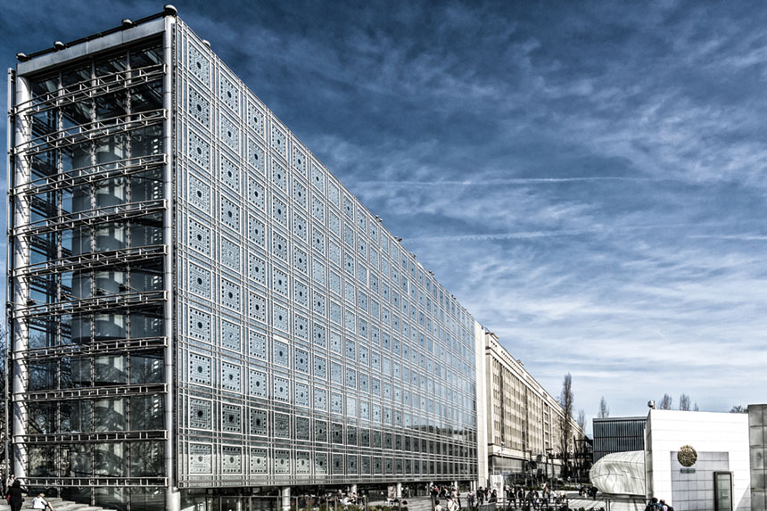 عندما يدور الحديث في باريس عن جسر الثقافة بين الشرق والغرب، يتبادر فوراً إلى الذهن صرح ينتصب على ضفاف نهر السين، في مبنى معماري مهيب صممه المعماري الفرنسي الشهير جان نوفيل: إنه «معهد العالم العربي» أو «ليما» كما يسميه الفرنسيون اختصاراً، الذي افتتحه الرئيس الفرنسي الأسبق فرنسوا ميتيران في ديسمبر1987م، ليكون مؤسسة ثقافية تستقطب ثقافات العالم وتزاوج بينها، لتمنح الزائر والمثقف فسيفساء ثقافية متنوّعة، تتشكَّل في زخم حضاري مشرقي إسلامي، حاول قدر المستطاع تجاوز صدام الحضارات التي أسست له بعض الأقطاب الفكرية الغربية.