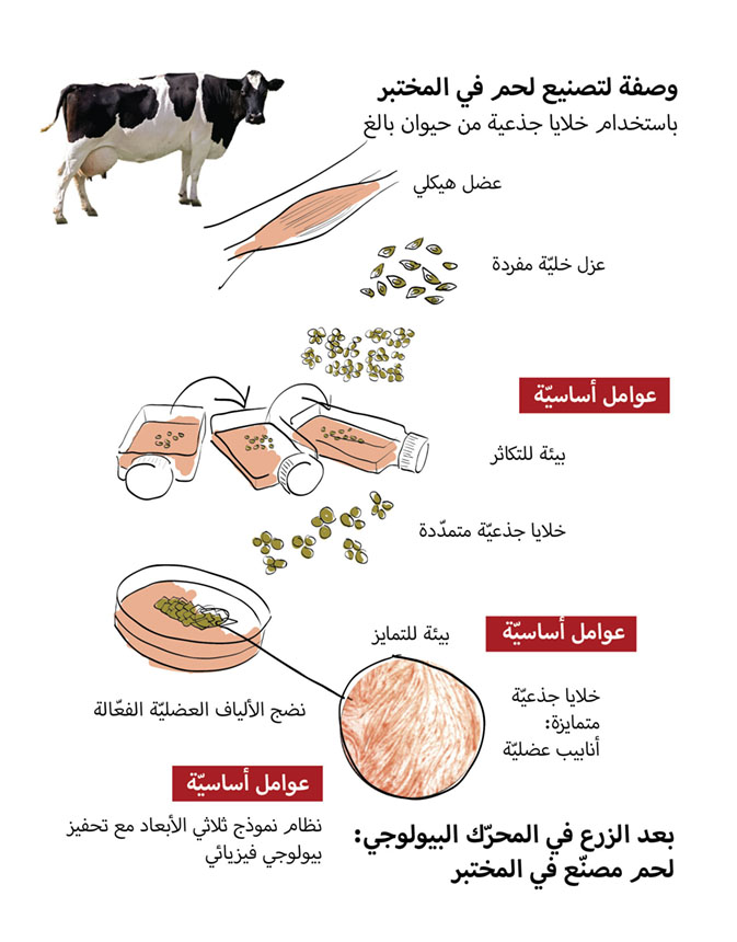 يشكِّل الطلب المتزايد على اللحوم الحيوانية الصالحة للاستهلاك البشري تحديات جمَّة، منها ما يتعلَّق بالقدرة على تلبية هذا الطلب كماً، ومنها ما يهدِّد استدامة تربية المواشي مثل الأبقار والأغنام، ومنها ما يصل إلى حدود التماس الخطير مع سلامة البيئة. لذا، ومنذ سنوات، يبحث العلماء عن طريقة لتأمين اللحوم الصناعية، علّ في ذلك ما يخفِّف الضغوط على المزارع الطبيعية. وبالفعل، فقد نجحت جهود كثيرة على المستوى المخبري، ولكن ما بين هذا النجاح، وتعويدنا على استهلاك اللحم المستزرع ثمة مسافة طويلة يجب اجتيازها.