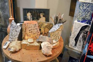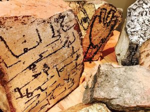 ويضيف حول انهماكه في دراسة اللقى الأثرية التي تعود إلى ما قبل الإسلام، عندما اقتصر التعبير الفني إلى حدٍّ كبير على فن الخط. “هناك حجارة تقابلك في تجوالك بالصحراء وتبدو عديمة الأهمية. أحاول تتبع نوعيتها ومعرفة الصخر الذي انفصلت عنه. إنها تحمل قصة أحاول تقصيها أو تخيّلها. فقد وجدت على سبيل المثال حجراً مستطيلاً ذا شكل هندسي يؤكد أن يد الإنسان تدخَّلت فيه وشكلته بهذا الشكل. ترى لماذا؟ ولأي غرض نحت بهذا الشكل؟ الأسئلة تحث على مزيد من البحث، وهذا يؤدي إلى مزيد من الاكتشاف والمعرفة. ثم يأتي دوري كفنَّان في إعادة بناء التكوين الكلي لبيئة هذا الحجر أو ذاك”.