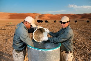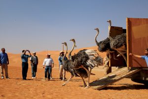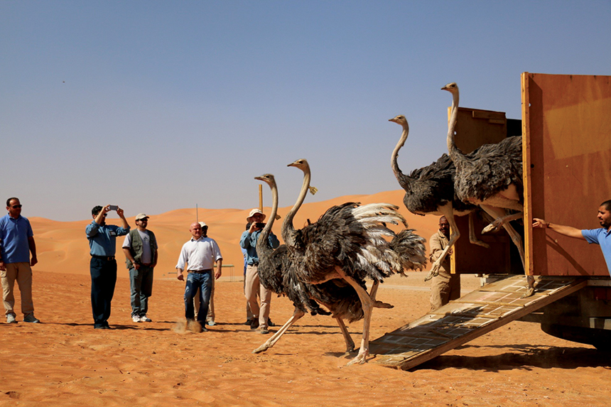 وقد عانت طيور النعام من مصير مشابه قبل ذلك، حيث أدَّى الصيد الجائر إلى اختفاء هذا الكائن من الربع الخالي قبل حوالي 120 سنة. وتم توثيق وجود هذا الحيوان في شبه الجزيرة العربية آخر مرة عام1939 تقريباً. وتناقصت كذلك أعداد غزال الريم بشكل كبير جداً في شبه الجزيرة العربية للأسباب نفسها. ومع فقدان هذه الحيوانات النادرة، عانى الربع الخالي من خسارة مأساوية اعتبرها كثيرون غير قابلة للتعويض. وعلى خلفية هذه الأحداث، قرَّرت أرامكو السعودية التدخل وبدأت تُخطط لإرجاع هذه السلالات إلى موطنها الأصلي.