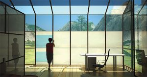 ونظراً للدور المهم والرئيس للنوافذ في أي مبنى، فقد طالتها موجة الذكاء العالمية وتحولّت من مجرد فتحة في الجدار بها لوح زجاجي، إلى أداة تكنولوجية بالغة التطور للتحكم بالضوء والحرارة وترشيد استهلاك الطاقة والاستفادة القصوى من الطاقة المتجدِّدة والنظيفة المحيطة بنا. يعرف هذا النوع من النوافذ باسم “نوافذ الزجاج الذكي” ( Smart Glass Windows )، ويتميز بإمكانية التحكم بشفافية النافذة بشكل كبير، حيث يتغيّر لونها تلقائياً) بناءً على درجة حرارة البيئة المحيطة، وظروف الإضاءة، وهذا يحسن من كفاءة استخدام الطاقة. فاللون القاتم في أشهر الصيف يقلل من انتقال حرارة الشمس إلى داخل المبنى، وهذا يقلل من الحاجة إلى تكييف الهواء. ويتم هذا عن طريق التحكم في المجال الكهربائي الذي تتعرَّض له تلك النوافذ مما يؤدي إلى التحكم في درجة الإعتام حسب شدة التيار الكهربائي المسلّط عليها.