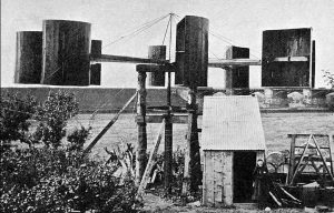 أما على الجانب الآخر من المحيط الأطلسي، فقد أنشأ تشارلز براش سنة 1888 طاحونة هواء كهربائية أكبر، وقد استُخدمت في إنتاج الطاقة الكهربائية حتى العام 1900. ونُصِبَت على عمود ارتفاعه 18 متراً وبلغ قطر فراشها 17 متراً، أما قدرتها فبلغت 12 كيلواط، وشحنت بطاريات بالكهرباء وأنارت مصابيح.