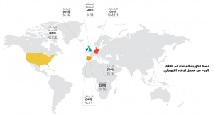 وثمة معيار آخر، قد يكون أهم من وجهة نظر مختلفة، في تعيين مكانة الدول في هذا المضمار، وهو النسبة التي ينتجها بلد ما من كهرباء بطاقة الرياح، بالمقارنة مع مجموع ما ينتجه من كهرباء بكل الوسائل الممكنة. ففيما بلغ إنتاج العالم عام 2015 من طاقة الرياح، بالمقارنة مع الإنتاج بجميع الوسائل %3,5، تخطت بعض الدول هذه النسبة، متقدمة على كثير من الدول الأخرى.