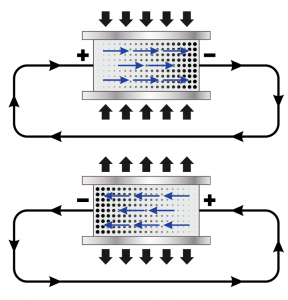 إذاً من المثال السابق يمكننا تحديد معيارين لحصد الطاقة من البشر: عدم تكريس البشر أنفسهم لتوليد الطاقة، وعدم إضافة جهد إضافي في الحركة ” الطبيعية” من قبل المستخدم للاستفادة من الطاقة. وأحد أفضل الأمثلة على الآليات التي تحصد الطاقة من البشر هي الكهرباء الانضغاطية. وهي توليد تيار كهربائي عن طريق تطبيق ضغط على مواد لها هذه الخاصية، التي اكتشفت 1880 من قبل جاك وبيير كوري. ومن أمثلة هذه المواد الكوارتز المتواجد بشكل طبيعي أو مواد مصنعة مثل مركبات السيراميك مع شوائب.